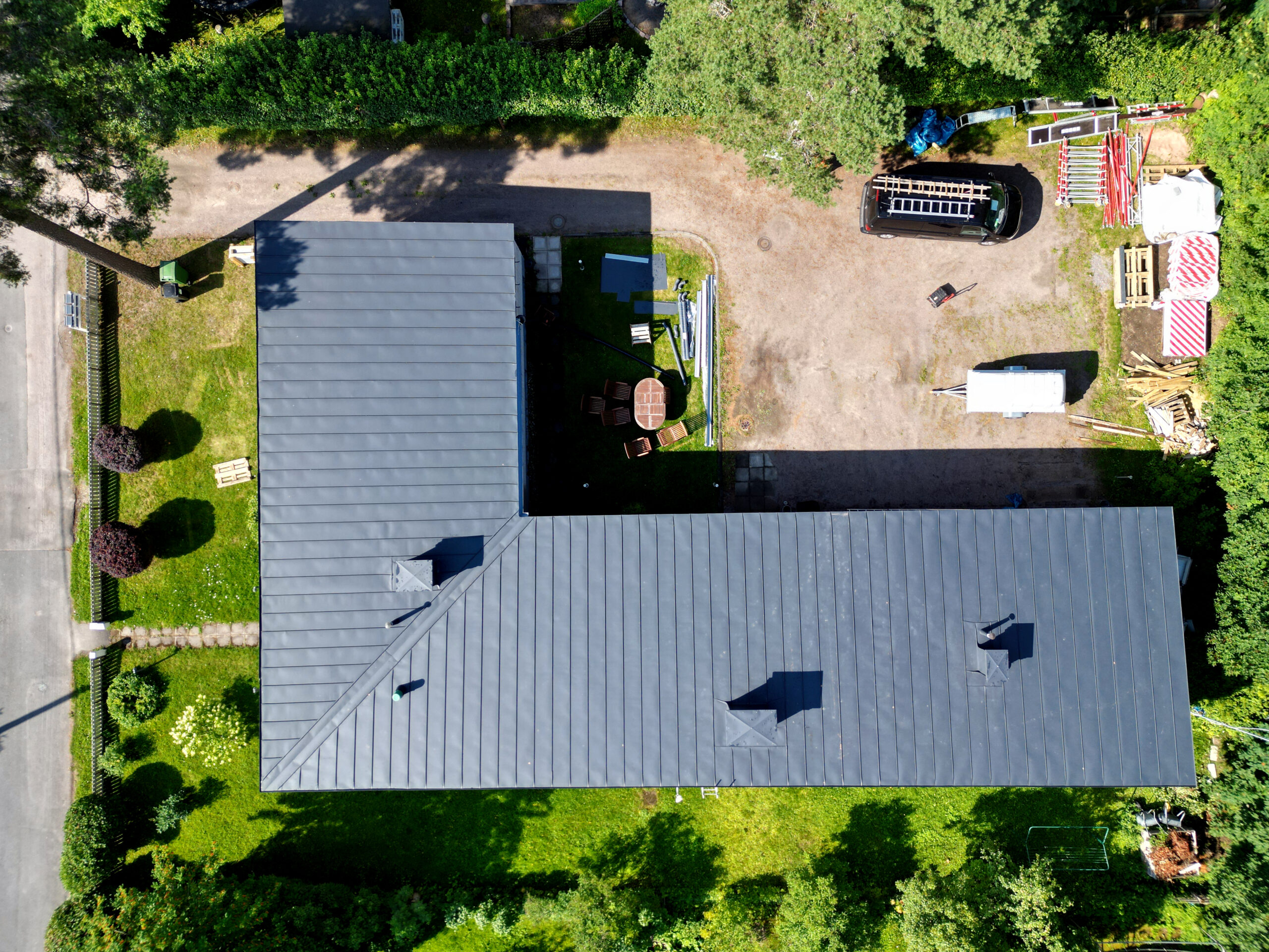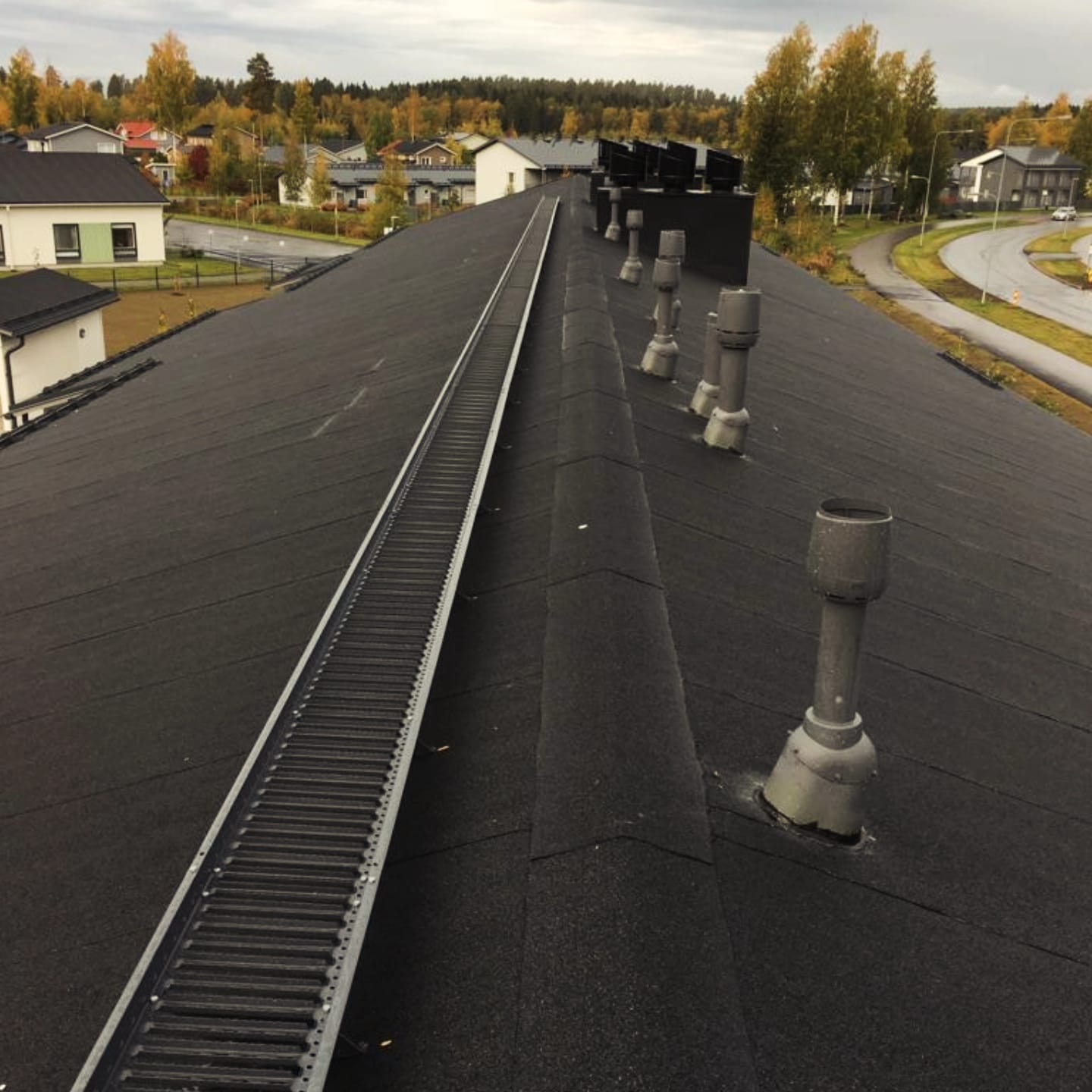 - Läpiviennit peltisepän ammattitaidolla: Bitumikermikatto viimeistellään peltisepäntyönä tehdyillä läpivienneillä sekä seinällenostoilla ja reunalistoilla kauniiksi ja vedenpitäväksi kokonaisuudeksi.