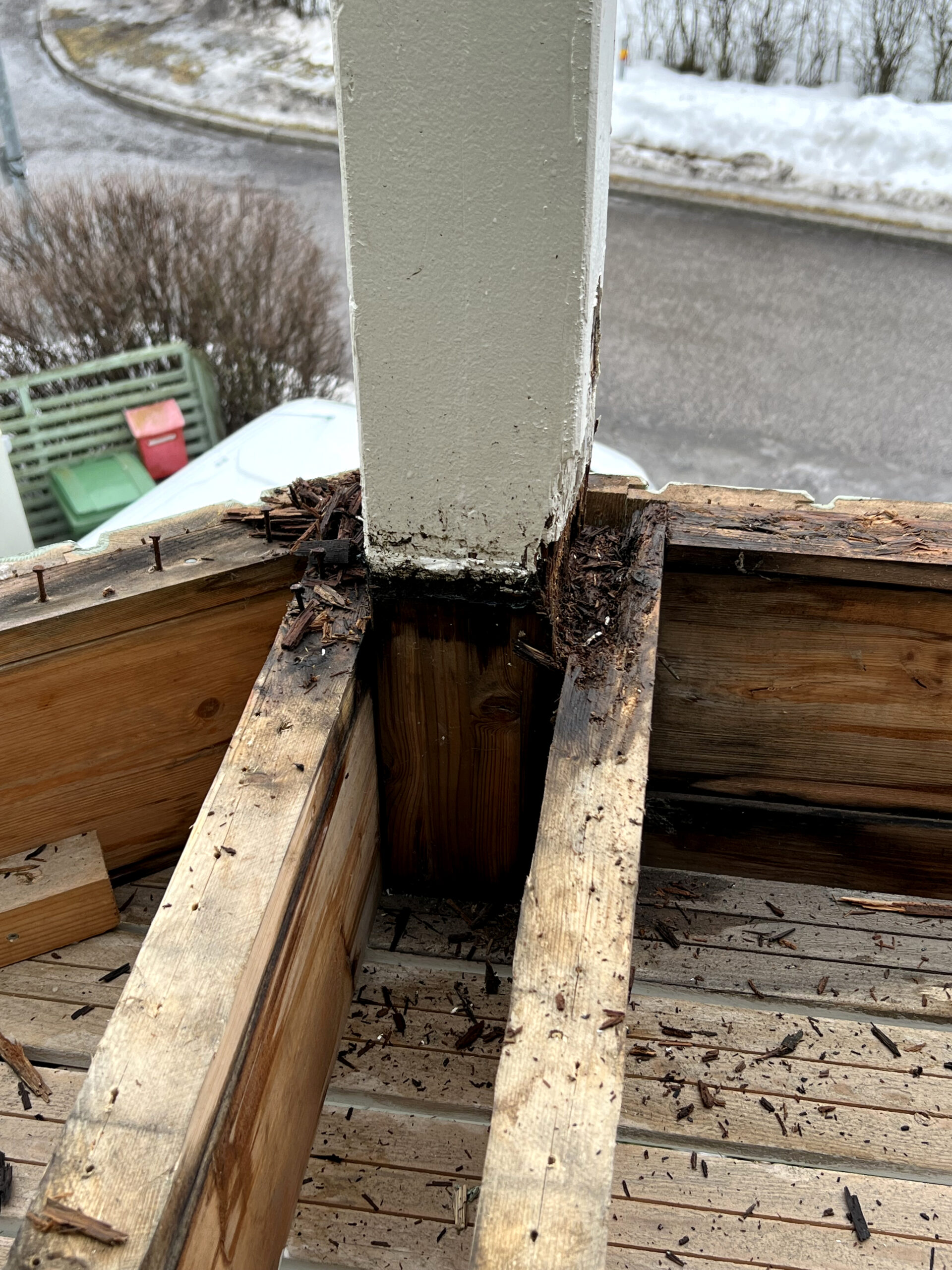 Projekti alkoi perusteellisella tarkastuksella, jonka aikana tunnistettiin parvekkeen eristeen vuotokohdat ja lahot ponttilaudat. Tämän jälkeen vanha EPDM-kumieriste poistettiin ja lahot ponttilaudat korvattiin uusilla, kestävillä materiaaleilla. Tärkeänä osana projektia oli Protanin PVC-katteella tehty uusi vedeneristys, joka tarjoaa luotettavan suojan veden aiheuttamilta vahingoilta.