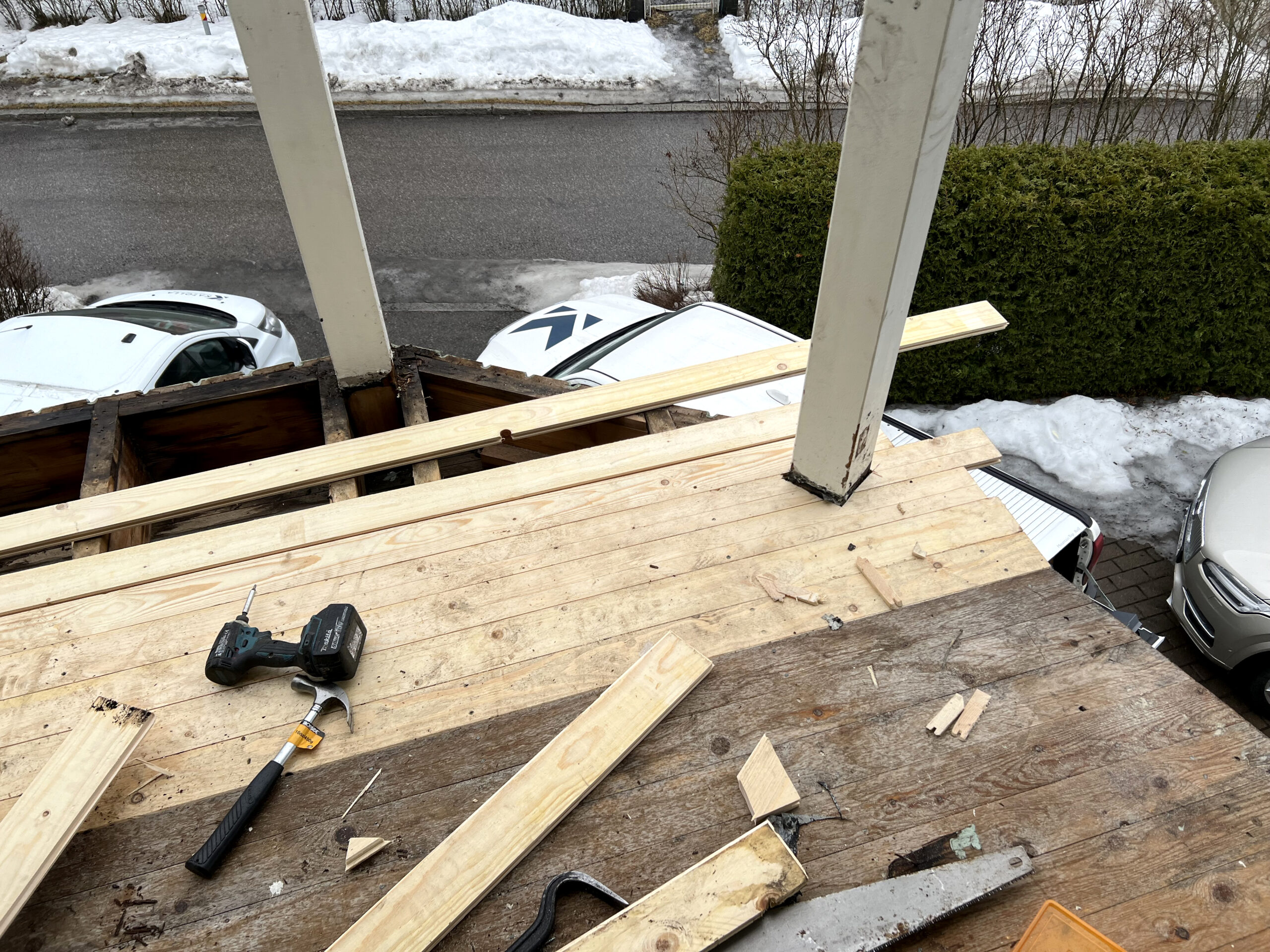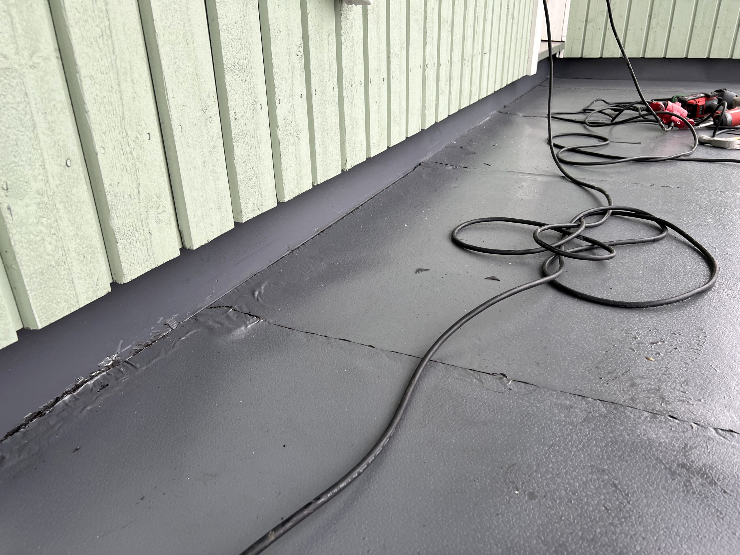 - Projektin laajuus: Vanhan vuotavan EPDM-kumieristeen poisto, lahojen ponttilautojen vaihto ja uusi vedeneristys Protan PVC-katteella
