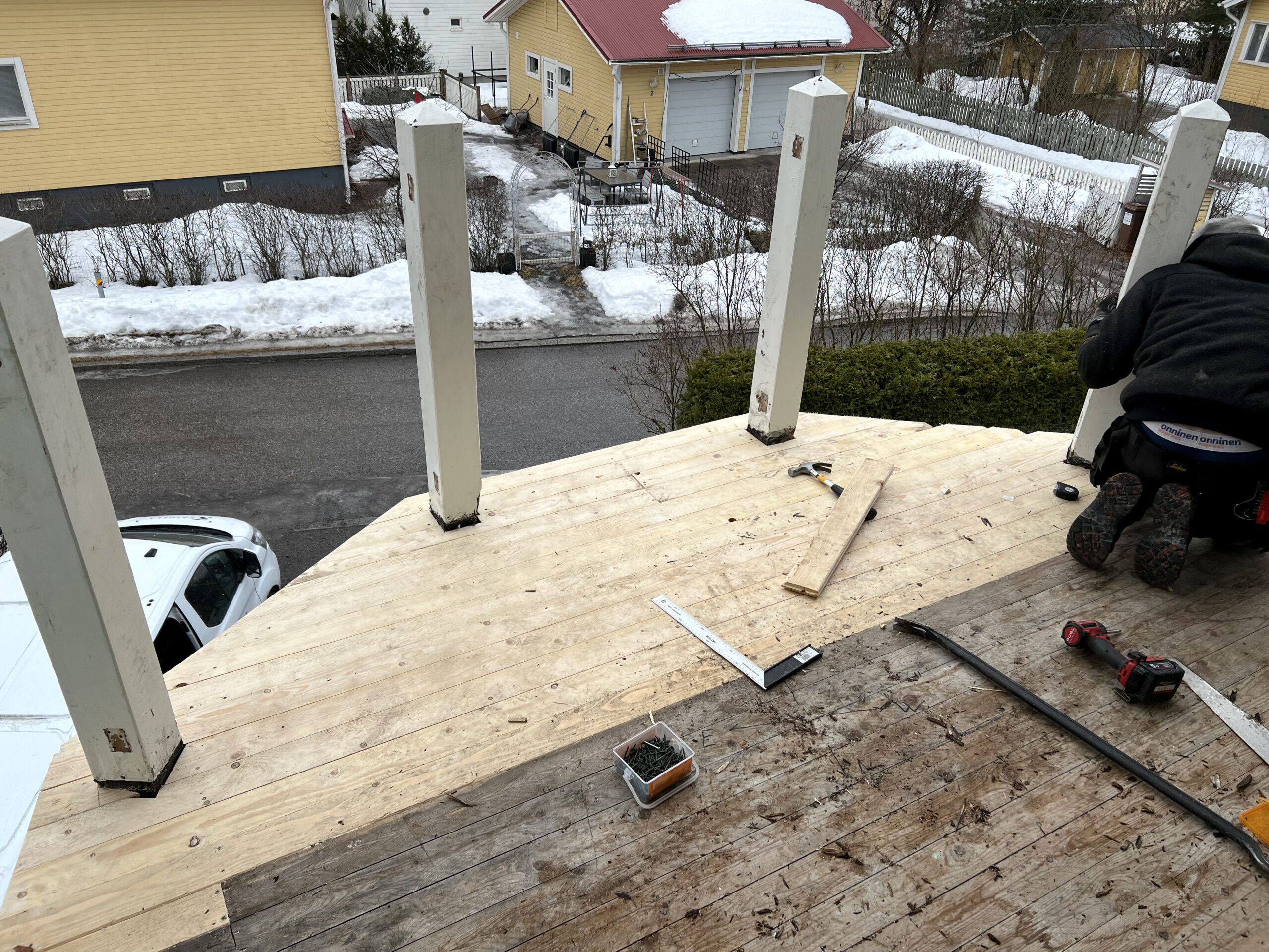 - Palvelut: Vanhan eristeen poisto, ponttilautojen uusiminen, uuden vedeneristyksen asennus