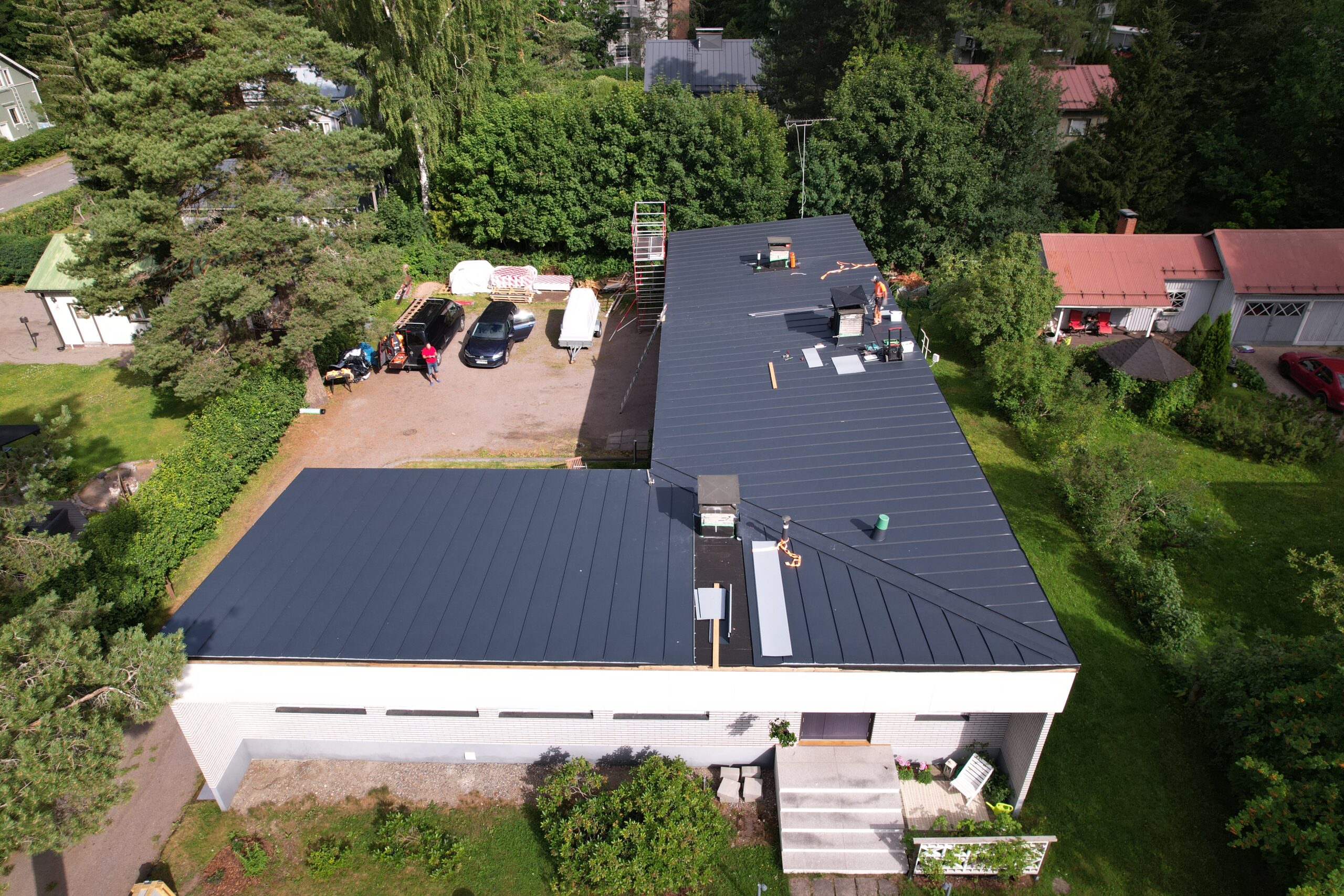 Kattoremontti Hyvinkäällä: Vanha konesaumakatto uusittiin komealla konesaumakatolla