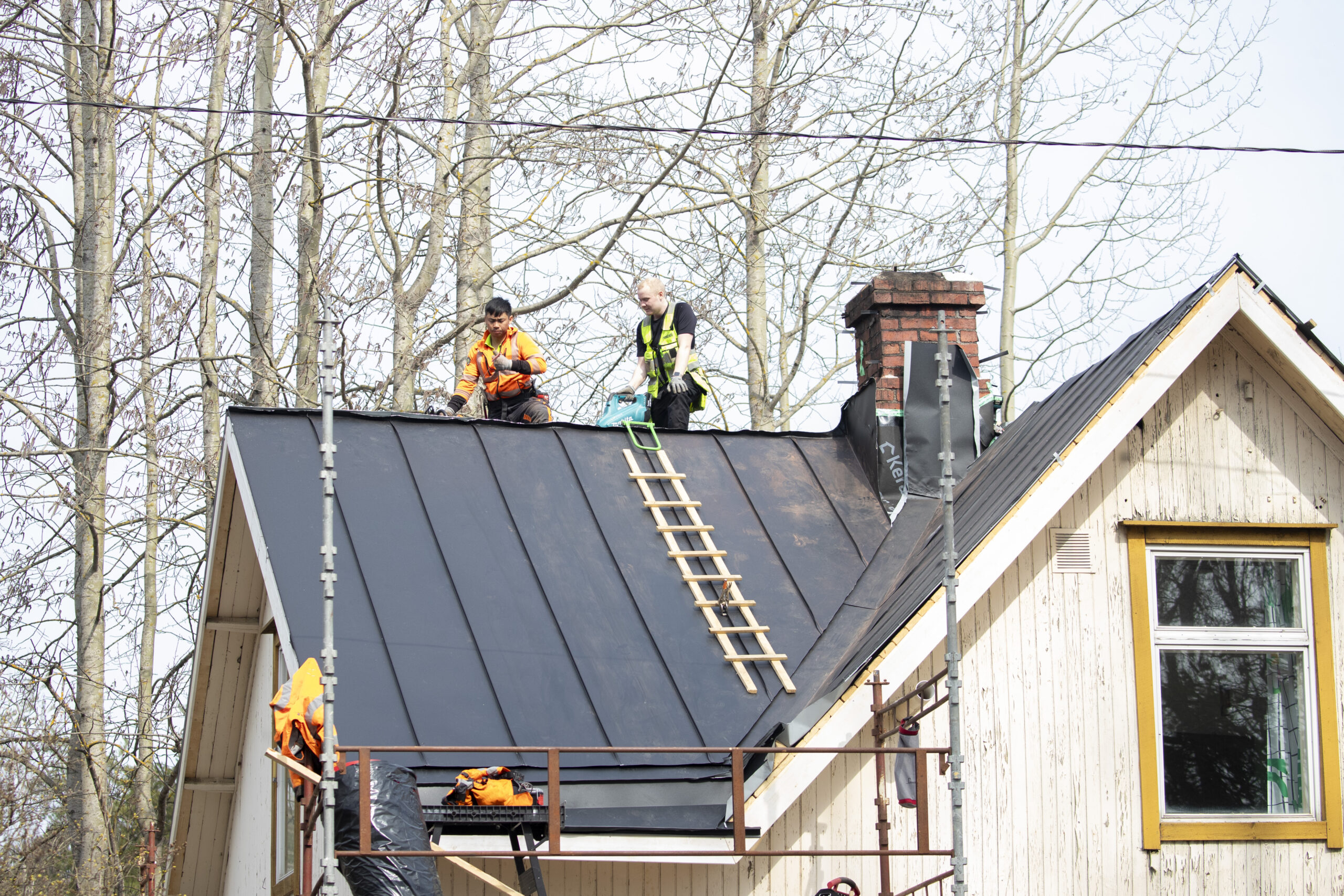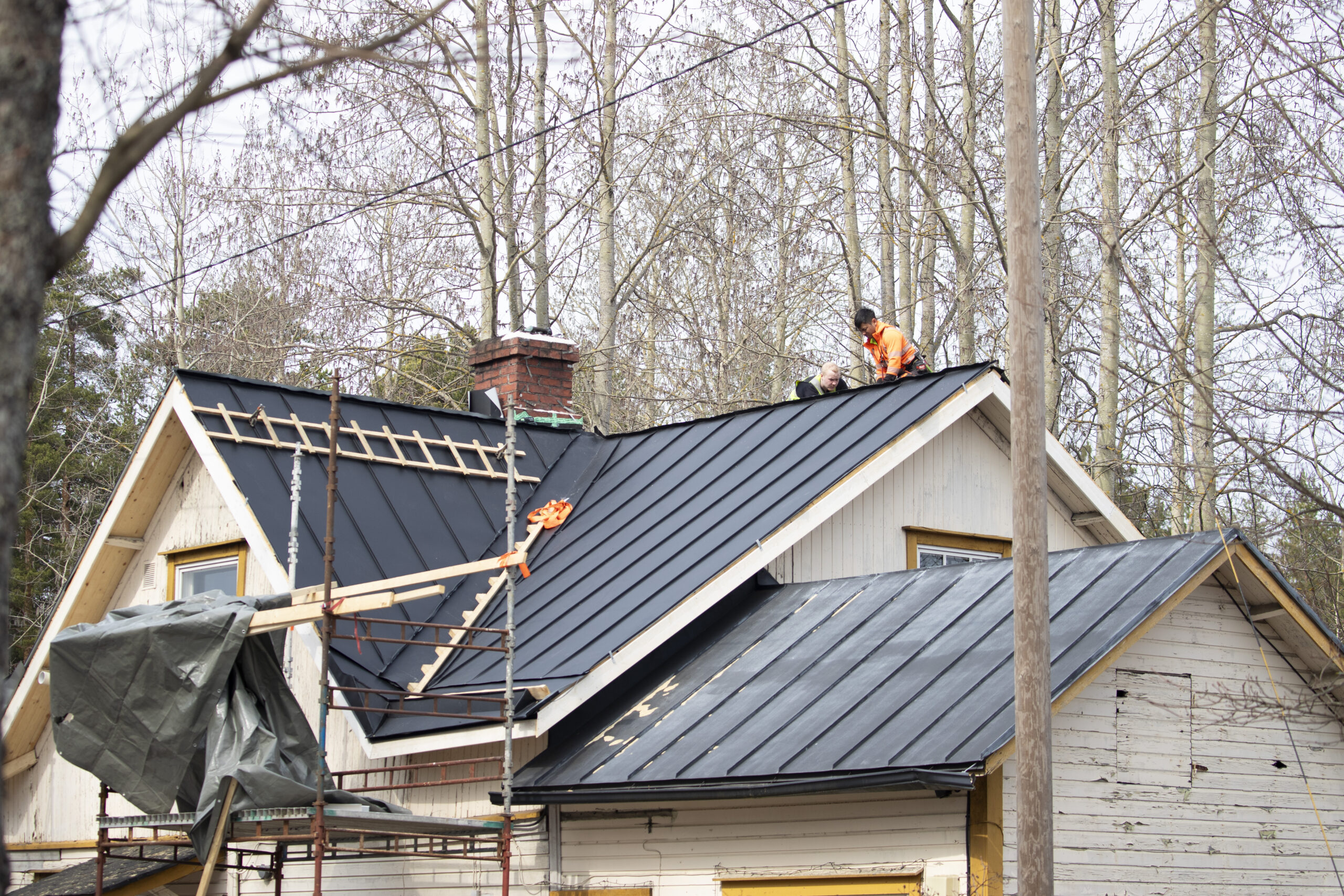 • Palvelut: Vanhan katon poisto, rakenteiden vahvistus, täyslaudoituksen asennus, aluskermin asennus, uuden konesaumakaton asennus