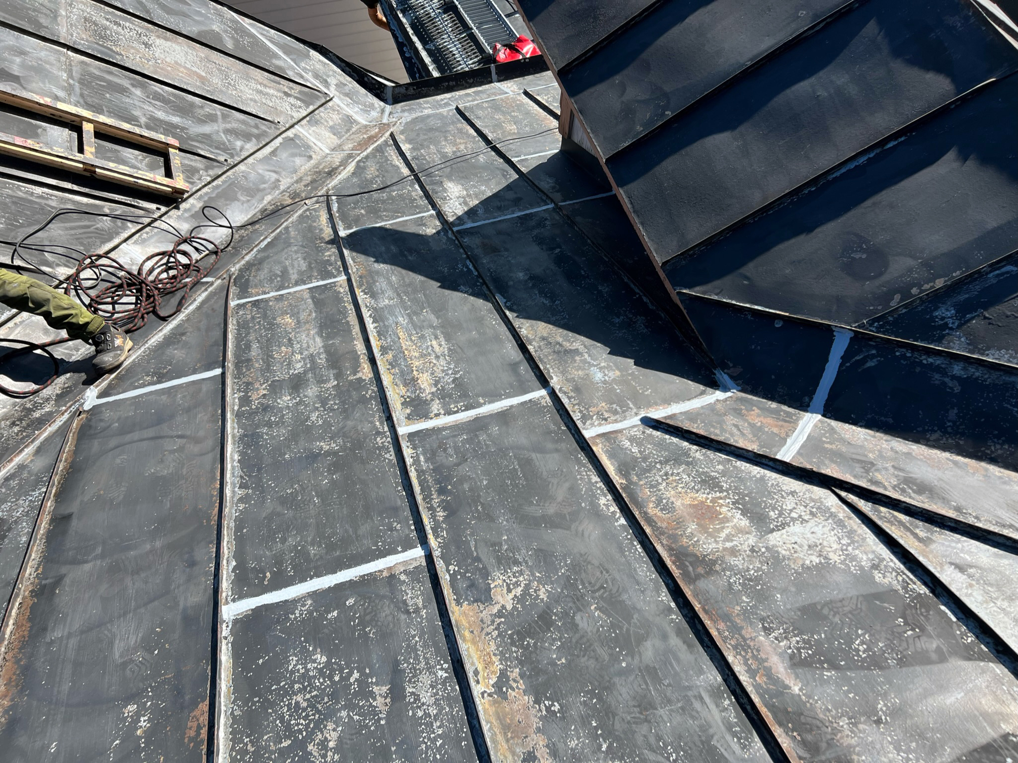 • Projektin laajuus: Vanhan saumapeltikaton puhdistus, pintaruosteiden poisto ja kattopinnoitus Topps Seal -materiaalilla