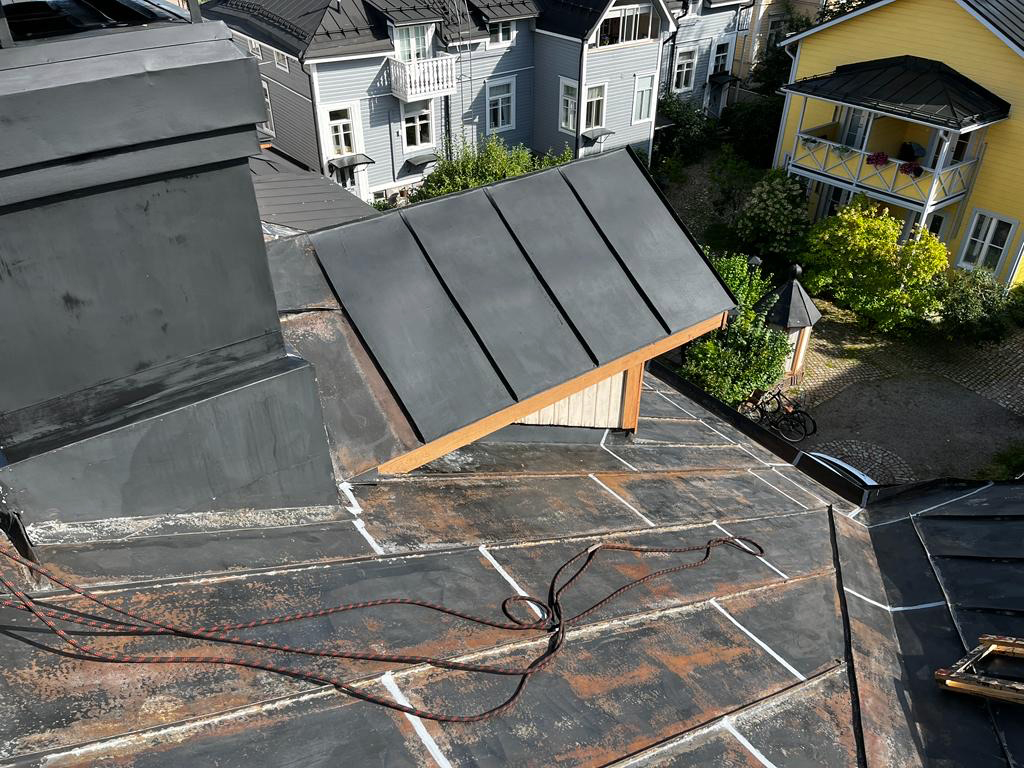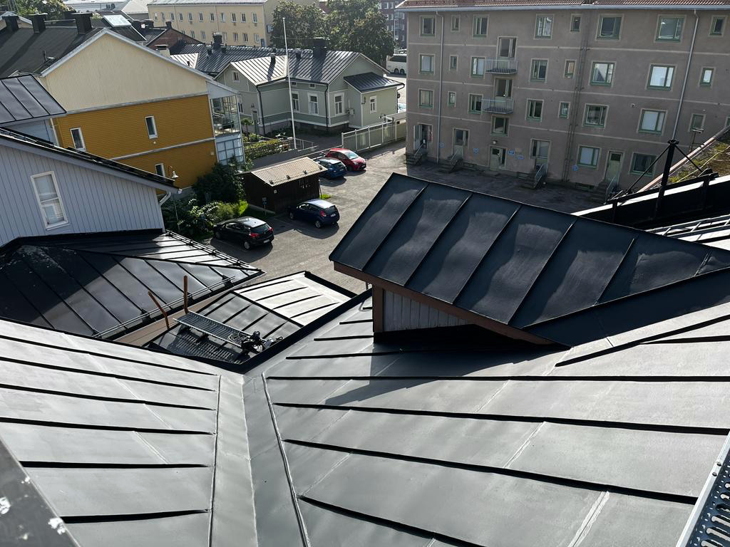 Katolla Oy:n erikoisosaaminen pääsi jälleen esille Porvoossa sijaitsevan kiinteistön saumapeltikaton uudistusprojektissa. Vanha, kulunut katto kaipasi kipeästi kunnostusta, jotta se pystyisi tarjoamaan luotettavan suojan tulevina vuosina. Projekti toteutettiin kiinteistön sisäpihan puolella, ja sen tavoitteena oli palauttaa katon ulkonäkö ja toimivuus modernilla ja kestävämmällä ratkaisulla.